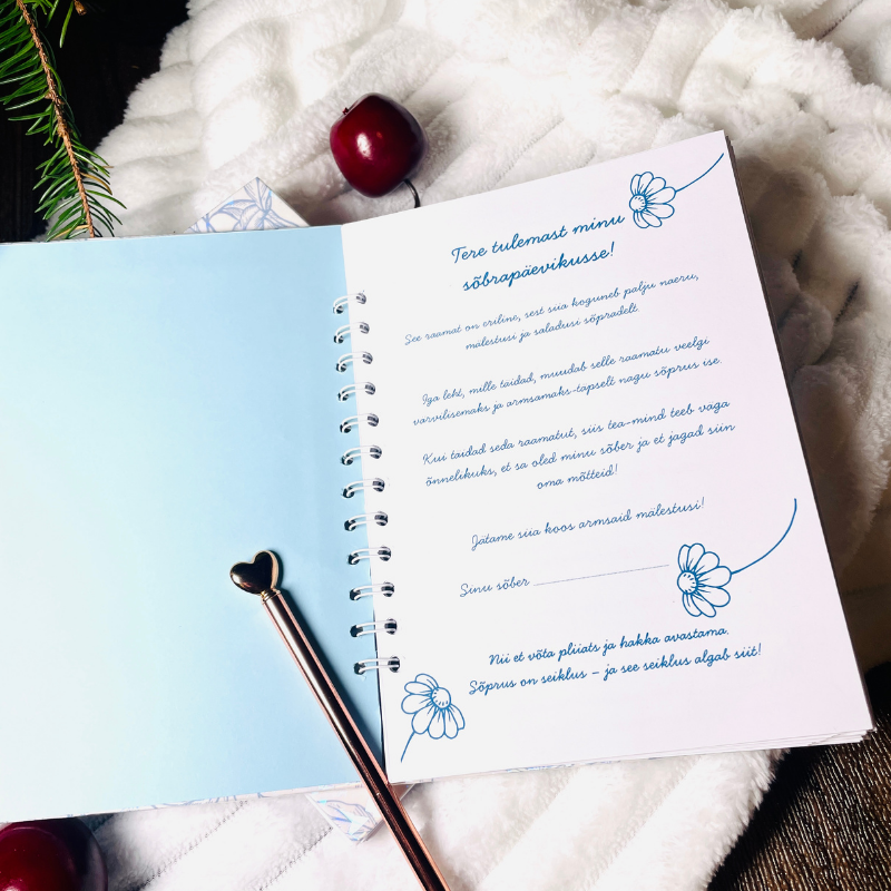 Sõbrapäevik on loodud selleks, et jäädvustada sõpruse hetki ja jagada rõõmu – lasta sõpradel kirjutada, joonistada ja meenutada koosveedetud aegu. Nii sünnib raamat, mis kasvab iga täidetud lehega aina armsamaks ja isiklikumaks.