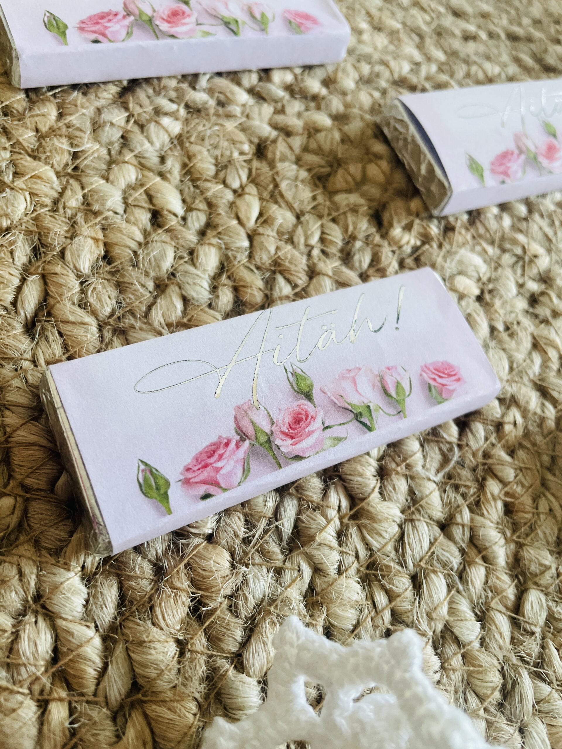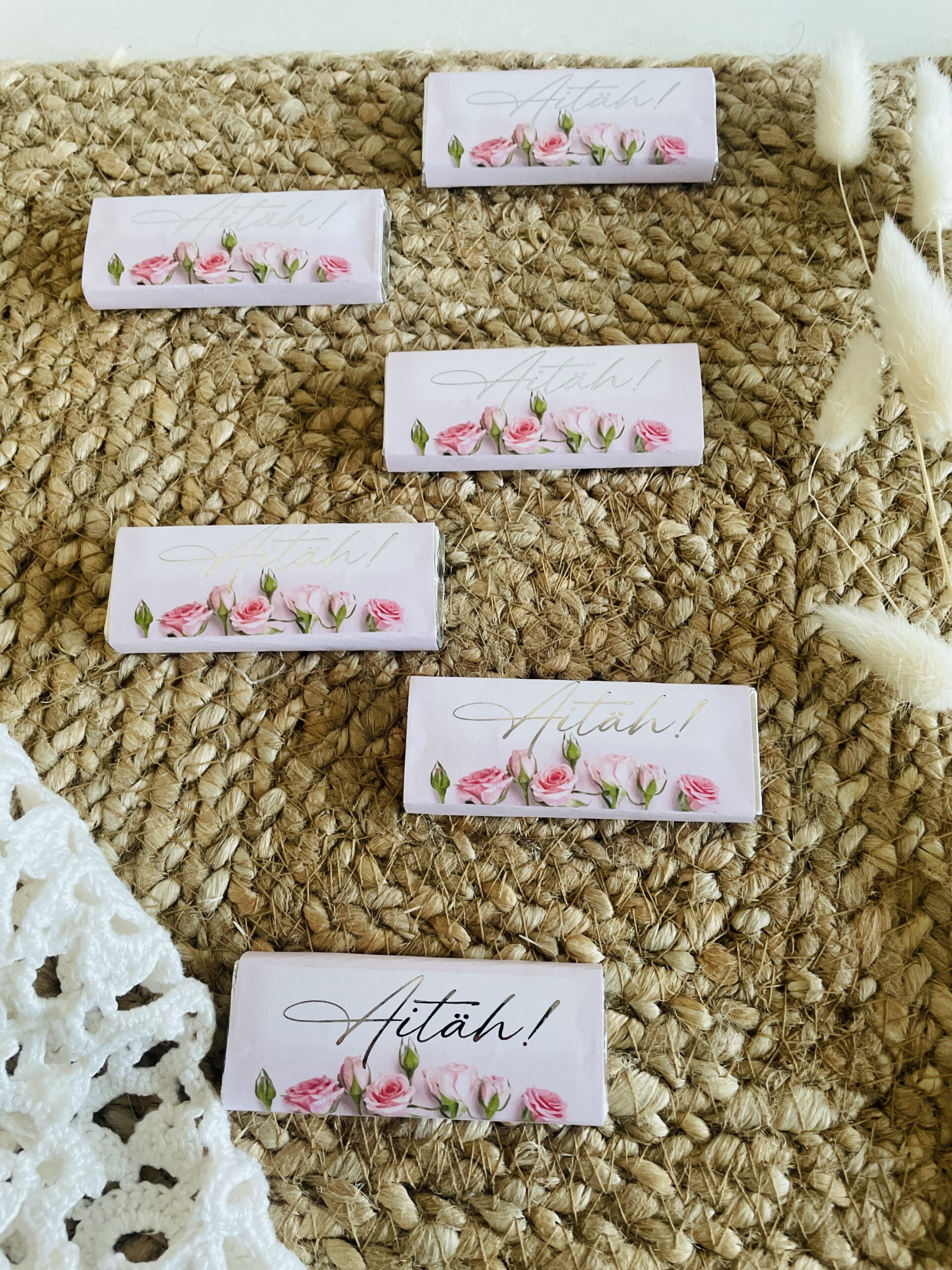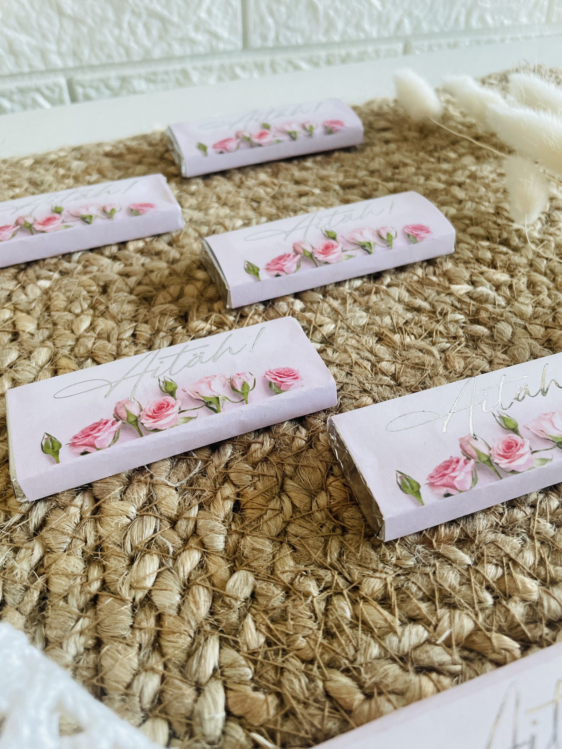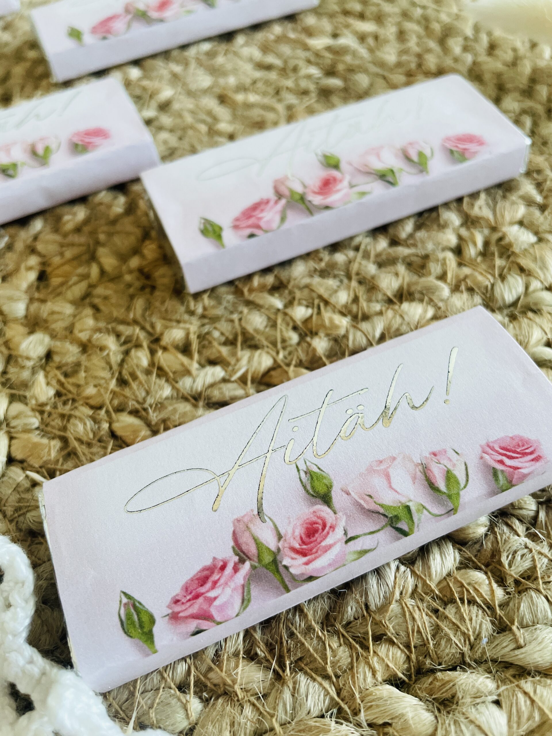 Personaalsed tänušokolaadid toimivad ühtaegu nii kohakaardi kui ka väikese kingitusena, mis jätab peolauale kauni mulje ja pakub külalistele magusa üllatuse.